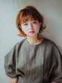 肩につかないショートボブスタイル★大きく巻いた前髪がキュートに!!襟足の外ハネで遊び心のある可愛いスタイルに仕上がります!カラーは暗くなりすぎない明るめオレンジ系で、耳かけスッキリみせるのもポイントです!