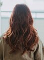 Aラインシルエットのロングスタイルです。顔まわりや表面に動きが出るようにレイヤーを入れています。カラーは10トーンのレッドピンク系でつやがあり柔らかさと可愛らしさを出しています。大人の女性にもおすすめカラーです。