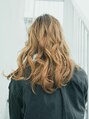 最近流行のバレイヤージュ。ハイライトよりもブリーチの範囲が広く。立体的でくっきり線の出にくいグラデーションカラーにしたい方にオススメです。ベージュブラウンのカラー。巻くだけで簡単に立体的になる為、全体的に巻いて、オイルで艶だしてあげましょう