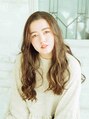 ギャルになりすぎない外国人のような透明感のあるベージュ系カラーです。パーマで作る強すぎないナチュラルなカール感がまた外国人のような質感を作ります。アイロンでの再現もできるのでパーマでも地毛でも再現しやすいスタイルになっております。