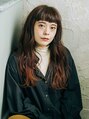 前髪ぱっつんの大人かわいいロングスタイルです。カラーは暖色系で毛先はブリーチをしてオンカラーしています。