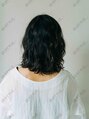無造作なミディアムレングスのウェーブスタイルです。バングなしの髪型で暗めのトーンのスタイルなのでクールなイメージのスタイルになります。全体をミックスにコテで巻くかスパイラルパーマをかけると楽にセットすることが可能です。