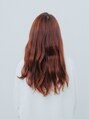 毛先は軽めに作った人気のロングスタイル。表面のツヤを生かすためレイヤーはあまり入れずに仕上げています。スタイリングは表面をポイントでウェーブ巻きにし、軽く動きをつける程度。オイルを全体に馴染ませツヤを足しました。