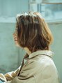 肩少し下くらいの長さで少し段の入ったスタイル。肩についてはねる長さで顎下が影で暗く見えやすいので、全体的にに少し透明感のあるカラーで染めました。スタイリングはアイロンで毛先を外ハネにしてトップをふんわりするように巻いて完成。