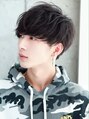 サイドパートマッシュでアンニュイで、オシャレな雰囲気を!サイドの隠し2ブロックと重めの前髪がポイントです!ゆるめのボディパーマを施すとスタイリングがより楽に!カラーは6トーンのナイトグレー