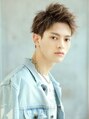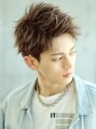 スパイキーな束感で作る男らしいアップバングショート!サイドには2ブロックを施し、全体はスパイキーな束感が出るようにセニング!ハイトーンカラーが合います!