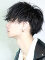 ツーブロック、刈り上げにマッシュベースのカットをします!前下がりカットで今っぽいマッシュスタイルです!パーマでシャープな無造作パーマをかけてスタイリングします!