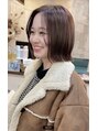 外ハネボブ ミニボブ 前髪なし マロンベージュ ボブ 20代UP