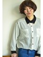 顔周りをマッシュに切った重ためのショートスタイル☆重たくなりすぎないように毛先がずれるようなパーマをかけて動きをプラス。すっきりとした春のお洋服ともバランスがとれますよ