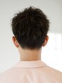 マッシュベースのツーブロックをベースに、ふんわり毛先パーマをプラス。長めに残した前髪をアップバングにセットすることで大人っぽい印象に。