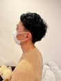 右サイドはスッキリ短く、アシンメトリーのスタイル。流れるような動きが出るように、カールを付け簡単なスタイリングでも自然にボリュームと動きが出せます。