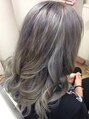シルバーアッシュ系グラデーションカラー!全体をブリーチして,さらに毛先をブリーチします。トップは暗めのアッシュカラー,毛先はホワイトグレーで透明感あるグラデーションカラーにします。上部分を明るくしたくない方は毛先のみのブリーチでも大丈夫です☆