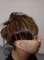サイド、バックは、刈り上げ。トップから流す感じでかぶして!!アクセントにテクノ$カラーは、全体ブリーチで脱色した後、ベースにミントブラウン、ポイントにピンクローズで遊び志を!!