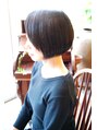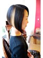 いつもモードなリクエストありがとうございます。とても個性的なボブスタイルです♪左右長さの違うアシンメトリーなボブスタイルにワンポイントでハイライト!とても似合ってます。ステキです☆