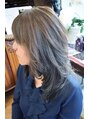 白髪染めでもたのしみましょ今回はブリーチでハイライトを入れた上から明るめのブルーシルバーで染め上げてます。ダメージ軽減に薬剤にファイバーを入れてます。白髪部分は淡いブルーブラウンに染まってますので、一か月後伸びた根本が目立ちにくい計算です。