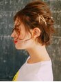 トップにボリュームを作りつつ束状に毛束を引き出し、美シルエットかつ、ゆるっとこなれ感。ねじり巻きハーフアップでさらに美シルエットに♪
