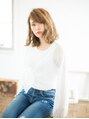 ハイトーンカラーのミディアムスタイルでゆるふわに☆重たくみえるボブスタイルも、細めの束感をつくり、エアリー感をだしています☆秋冬スタイルにオススメなスタイルです!