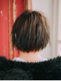 前髪、顔まわりにレイヤーが入ったボブ。短く丸いシルエットに重さを出さないために軽さを出しバランスを作っています。カラーはハイライトを入れオンカラー。グリーンの強いマット系です。ベースのカラーとのバランスが絶妙です!
