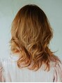 トップや顔まわりにレイヤーを入れることで、重たく見えがちな毛先を軽く見せてくれて、ふわっと巻いた時に空間ができとてもこなれ感が出るスタイル。グラデーションのカラーにもとてもあうカットスタイル。