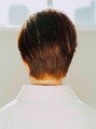 全体的にタイトに仕上がったハンサムショートスタイル!バングを少し長めに設定して流すことで縦長のシルエットが大人っぽさやクールな感じの印象をだしてくれます。ただクールになりすぎないように暖色系のカラーで柔らかさや女性らしさをだすのがおすすめ。