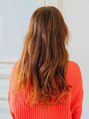 胸下のロングスタイルセンターパートで両サイドはかけているのでスッキリとした印象に。太めのコテで大きなウェーブをつけてくせ毛風のナチュラルなスタイリングです。