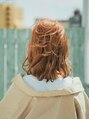 前髪長めのひし形フォルムのレイヤースタイルです。カラーは全体ブリーチを1から2回してオレンジ系カラーをオンカラーしています。髪の毛の量が多い人は量感調節を。