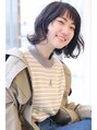 ナチュラル外はねボブ。明るめだった髪をダークブラウンに。ミディアムからばっさりカットで、イメージチェンジ♪