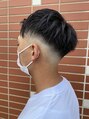 フェードカットとツーブロックの組み合わせで派手過ぎないスタイルです