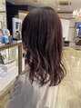 毛先はブリーチ履歴有のため仕上がりと退色の過程をできるだけ綺麗にするために少し暗めのピンクバイオレットで仕上げました