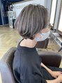 ショートボブ/グレージュ/ベージュ/切りっぱなし/ぱつっとボブ/グラデーションカラー/前下がり/大人可愛い/外国人風/韓国風/ブルージュ/くせ毛風/イルミナカラー/ケアブリーチ/くびれ/オイルカラー/ハイトーン