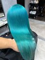 ハイダメージのお客様で、ケアブリーチを使いながら優しく毛先もリフトさせ、オンカラーでターコイズブルーに!