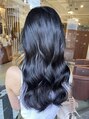 赤みを抑えたブラックで、光に当たると自然なツヤと透け感が出るカラー。重くなりがちな暗髪でも、柔らかく上品な印象に仕上げています。