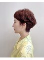 前下がりのショートスタイルに顔まわりを丸みをプラスして甘さを出したスタイル。カラーは暖色でソフトにパーマを入れる事で硬い印象を柔らかく仕上げました。