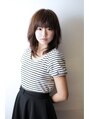 ひし形フォルムで小顔の効果大のレイヤーデザインです。透明感はありつつも中明度のベージュ系カラーで落ち着きのある雰囲気だけど厚めのバングで一気に可愛さを引き出すコーディネートで仕上げました。