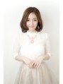 ベースは鎖骨レングスのレイヤーボブ。長めの前髪をひねってピンで止めて簡単アレンジ。暗めのシルキーベージュのカラーで落ち着きのある雰囲気のなかに柔らかなツヤを出しています。