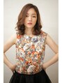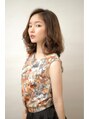 緩やかな動きのカールのスタイル。すそで揺れるリバースのカールが特徴的なニュアンスミディ。カラーはまろやかなゴールドベージュで優しい女性像に。