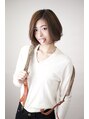シンプルなデザインのワンレングスボブ。ジャストの顎ラインなのでお洋服の影響を受けずにコーディネートもお楽しみ頂けます。カラーはゴールドベージュで柔らかで上品なイメージに仕上げました。