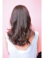 王道ゆるふわカールスタイル。シースルー系でやや長めの前髪を軽く流して今期っぽい雰囲気に。カラーは高彩度のピンクアッシュ。大人可愛いテイストの中でも少しモードな仕上がりになります。少し個性を出したい方にオススメです。