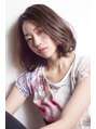 ブログにも書かせていただいたバッサリカットで切りっぱなしボブを、少し巻いた仕上がりです。ノーバングのクール可愛い演出。カラーは明度差4レベルくらいの細かいハイライトでアッシュグレージュ。日本人の肌のトーンに合う外国人風ニュアンスカラーです。