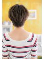 トップにボリュームを持たせた、ゆる~いカールがポイント☆ボーイッシュでクールになりがちな暗髪ショートにフェミニンさをプラスしてくれます♪クセ毛風マッシュは小頭効果も。目の上ギリギリの流し前髪で目元の印象もUP!やわらかな空気感が大人カワイイ