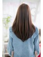 素髪感を活かした、シンプルでナチュラルなストレートロング。飾らい自然なスタイルで、内側からの美しさを引き出します。重めスタイルになりがちなロングも、ツヤと透明感あるイノセントカラーと、内巻きワンカールのレイヤーで軽やかな雰囲気に。好感度も◎
