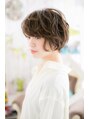 ラフな質感のエアリーカールで、無造作なのに色っぽいフェミニンショートに格上げ。長めの斜めバングで目元を印象付けて目力UP。丸みフォルムでやわらかな雰囲気にして、360度どこから見てもキレイな美シルエットに。耳かけも大人かわいいノーブルショート。