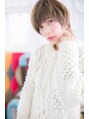温かみのあるベージュカラーやミルクティカラーが、丸みのある女の子らしいシルエットにマッチ。程良いドライ感でふんわりやわらかく仕上げるのがポイント。ワイドバングで目元を印象つけて目力UP!ガーリーショートで誰からも愛される妹系の可愛さを醸して。