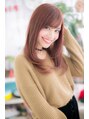 斜めバングと毛先ワンカールのストレート。ナチュラルだけど女の子らしいモテのテッパンスタイル。スポンテニアスカラーで個性的に仕上げてオンリーワンなヘアにすると旬顔。オレンジ系でポップな雰囲気にしたり、ピンク・レッド系でグラマラスにしてもOK!