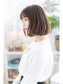シースルーバングであどけない表情を作りつつ目力強調。前下がりのワンカールで輪郭カバーして小顔見せ。シンプルなスタイルの中にカワイイが詰め込まれた愛されナチュラルボブ。グレージュやブルージュ、マーメイドアッシュの深みあるカラーで肌色キレイに。