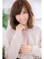 エアリーなニュアンスカールとピンクカラーで笑顔の似合うフェミニンなモテ髪に。ツヤカラーで肌を明るく美肌に斜めバングで目元を印象つけて目力UP、サイドの毛流れで輪郭カバーして小顔に・・・美人顔を作る要素が詰まっています。耳かけもお大人かわいい♪