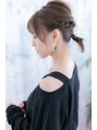 両サイドのねじりをくるりんぱでまとめてガーリーにおめかししたラブふわヘアアレンジ。トップにボリュームを出してスタイルアップ効果。おくれ毛で輪郭カバーして小顔見せ効果バッチリ◎シースルーバングで表情をチラ見せ。大人かわいい愛されスタイルです。