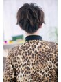 前髪をアシンメトリーなバランスで流し、ニュアンスパーマをかけた個性的ショート。カジュアルな動きを出しつつも、束感あるまとまりスタイルに。毛量の多い方はツーブロックで調整したり、質感を変えたい時は濡れ感あるウェットショートでセクシーにしても◎