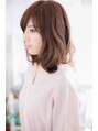 エアリーなニュアンスカールとピンクカラーで笑顔の似合うフェミニンなモテ髪に。ツヤカラーで肌を明るく美肌に斜めバングで目元を印象つけて目力UP、サイドの毛流れで輪郭カバーして小顔に・・・美人顔を作る要素が詰まっています。耳かけもお大人かわいい♪