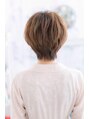 トップにふわっとボリュームを持たせ、厚めの斜めバングと合わせて丸みを持たせた女の子らしいショートスタイル。えりあしをスッキリまとめて清潔感も好感度もUP。明るいベージュカラーやグラデーションカラー、3Dカラーで外国人風の仕上がりがグラマラス。